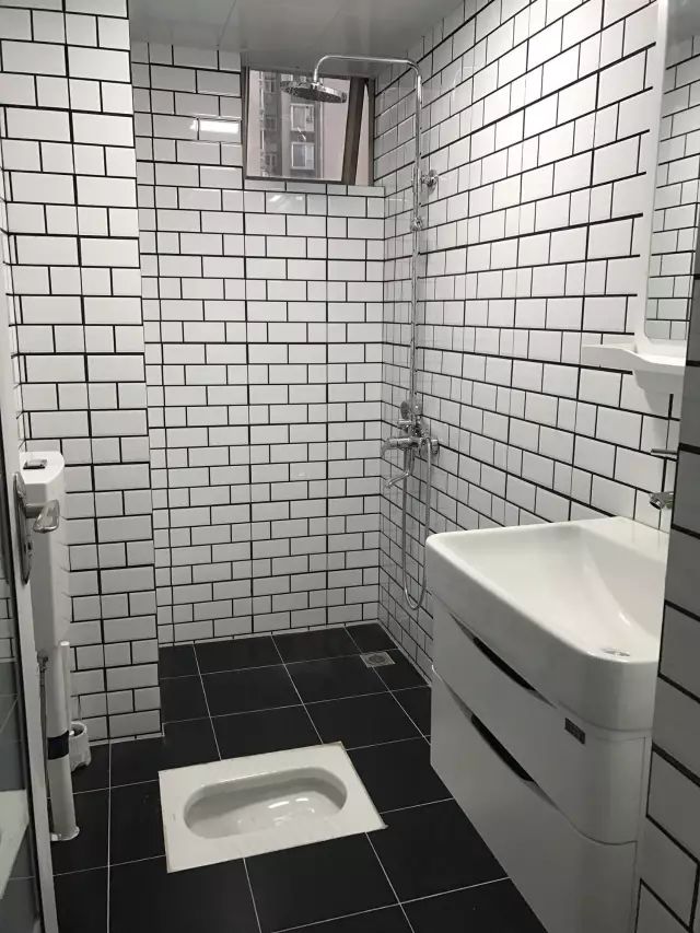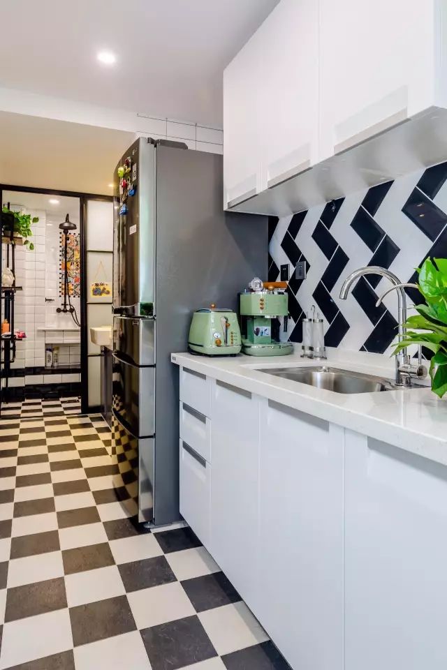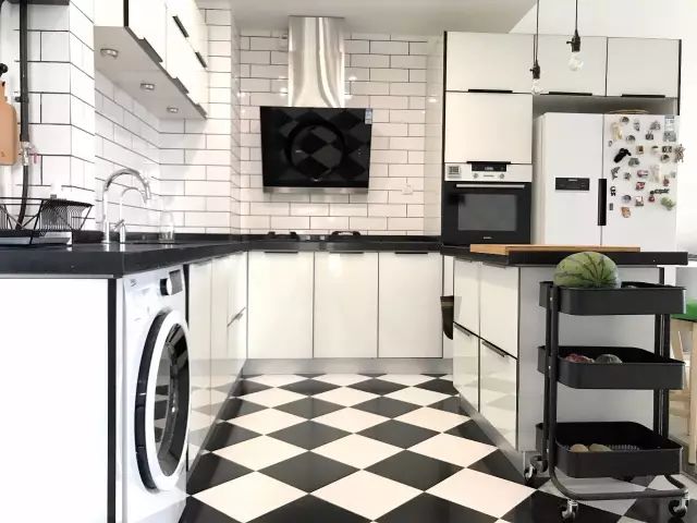 除了地面,墙面也是可以用黑色与白色的瓷砖来进行搭配的,形成一个分区的效果,把上方和下方给区分开,层次感更强。