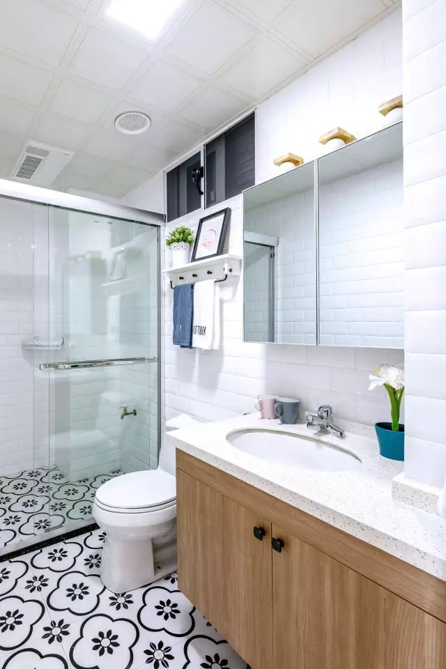 一些可爱的瓷砖造型,也是我们选择的一个判断依据,因为正常的黑白配瓷砖,难免会让人感觉有一些单调,如果换成各种不一样的图形,就不会如此了。