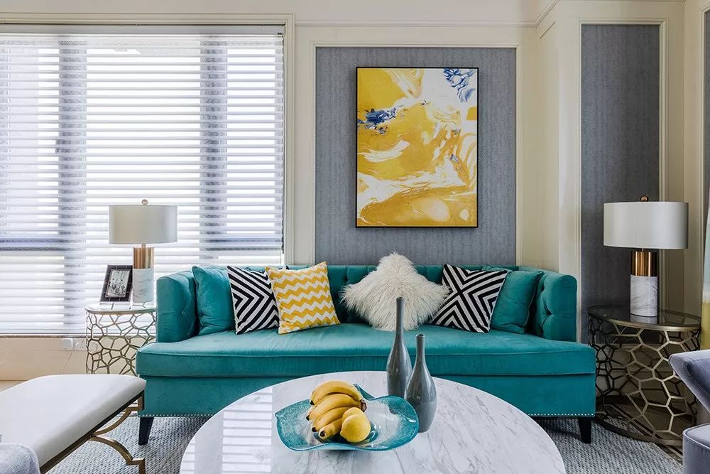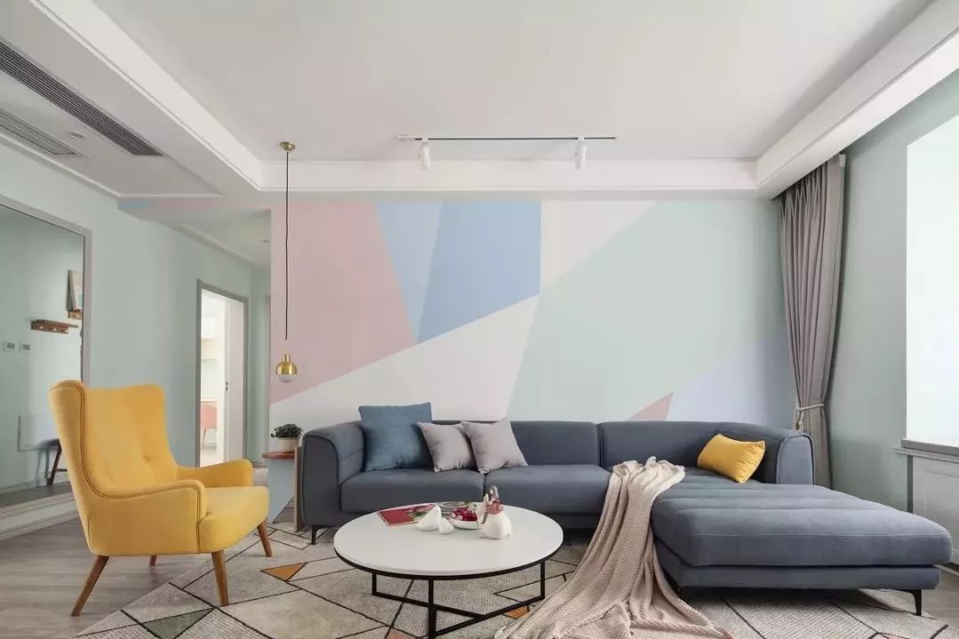 说到双拼就不能不提到用几何色块做得拼色背景墙,这些小清新的色彩让客厅看起来也舒服多了,小编觉得超级赞的。