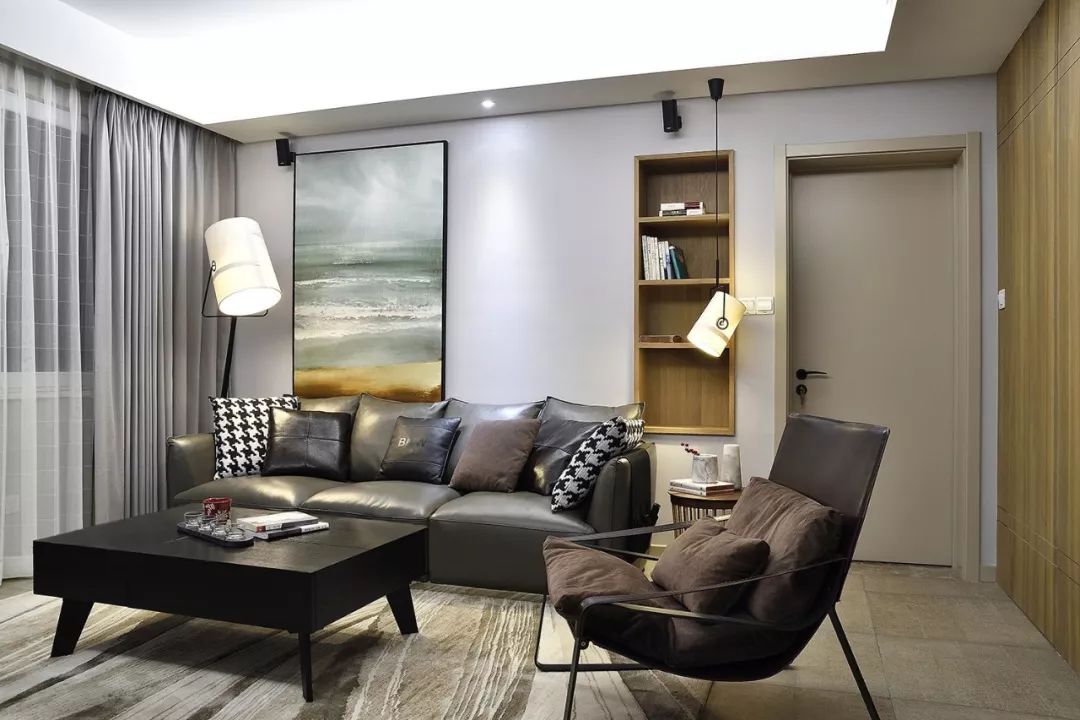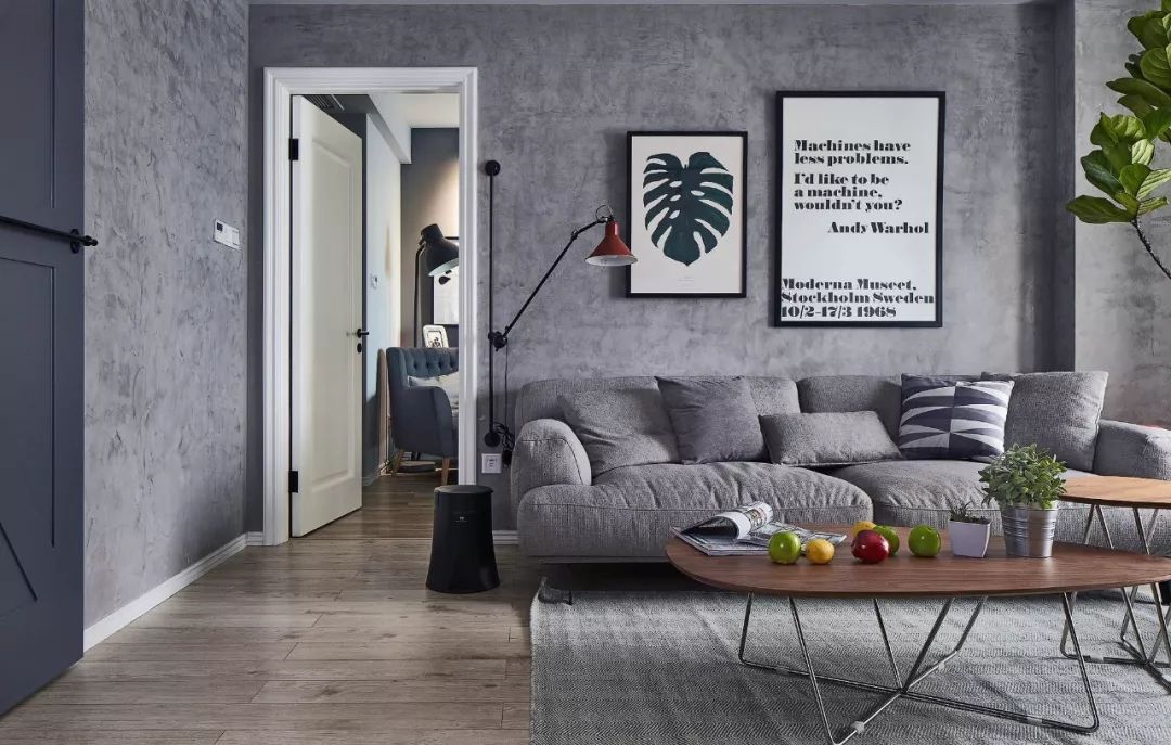 小编比较喜欢这样刷成了灰色系的沙发背景墙哟,壁纸和水泥漆都可以做到上图的效果,高级灰能让客厅显得更有格调感。