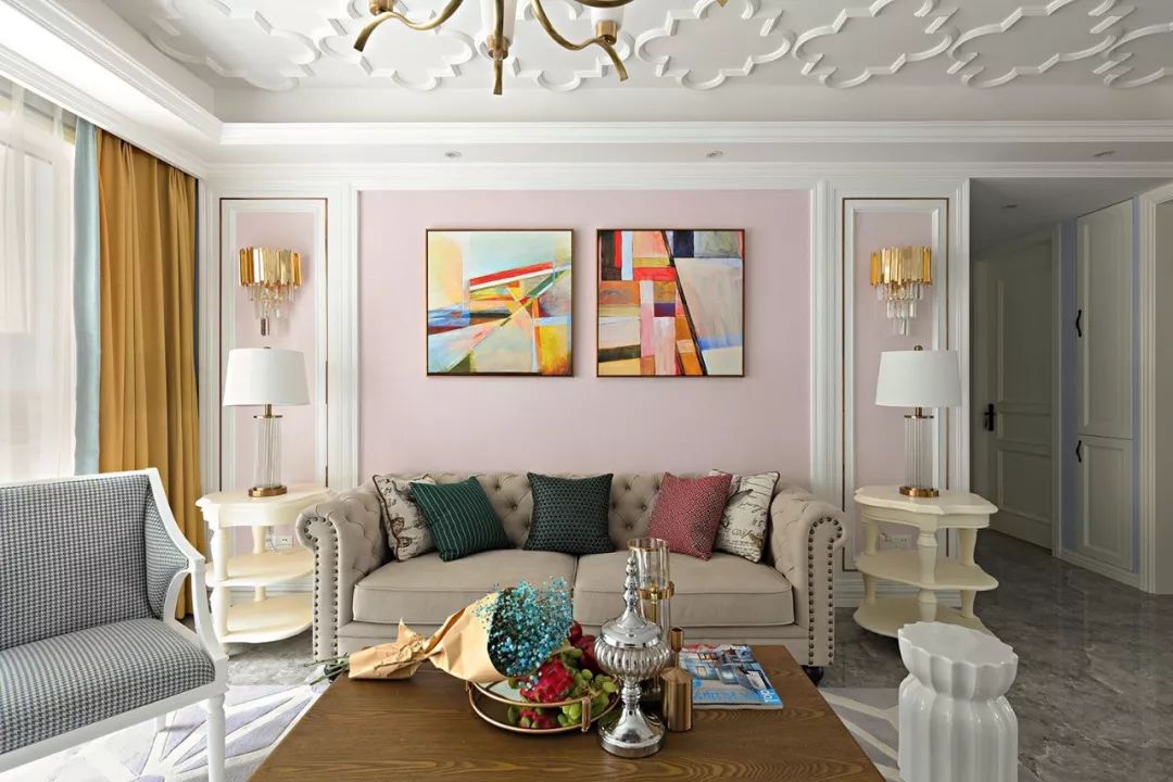 如果你家是装修成了美式、欧式风格,那么小编推荐你可以选择石膏线边框线条和乳胶漆、挂画、壁灯的组合,高档大气做法还简单。