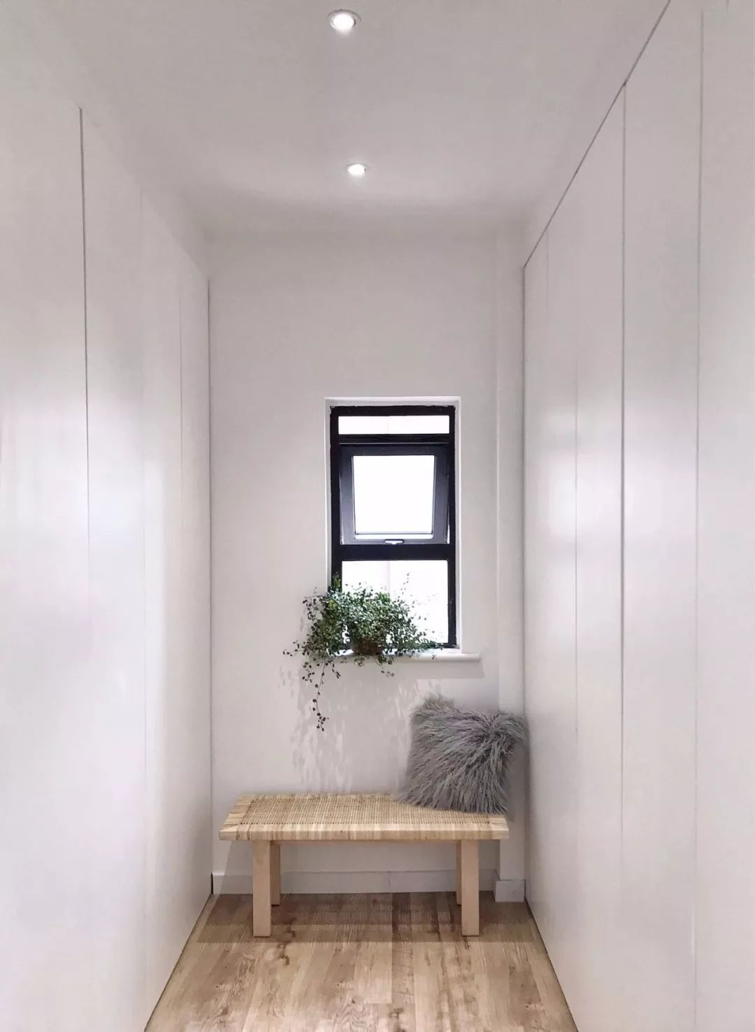 衣柜的侧方还可以选择留出一排的开放式的空间,用来代替床头柜、摆放书籍、绿植等,多出开放式的空间看起来更美观。