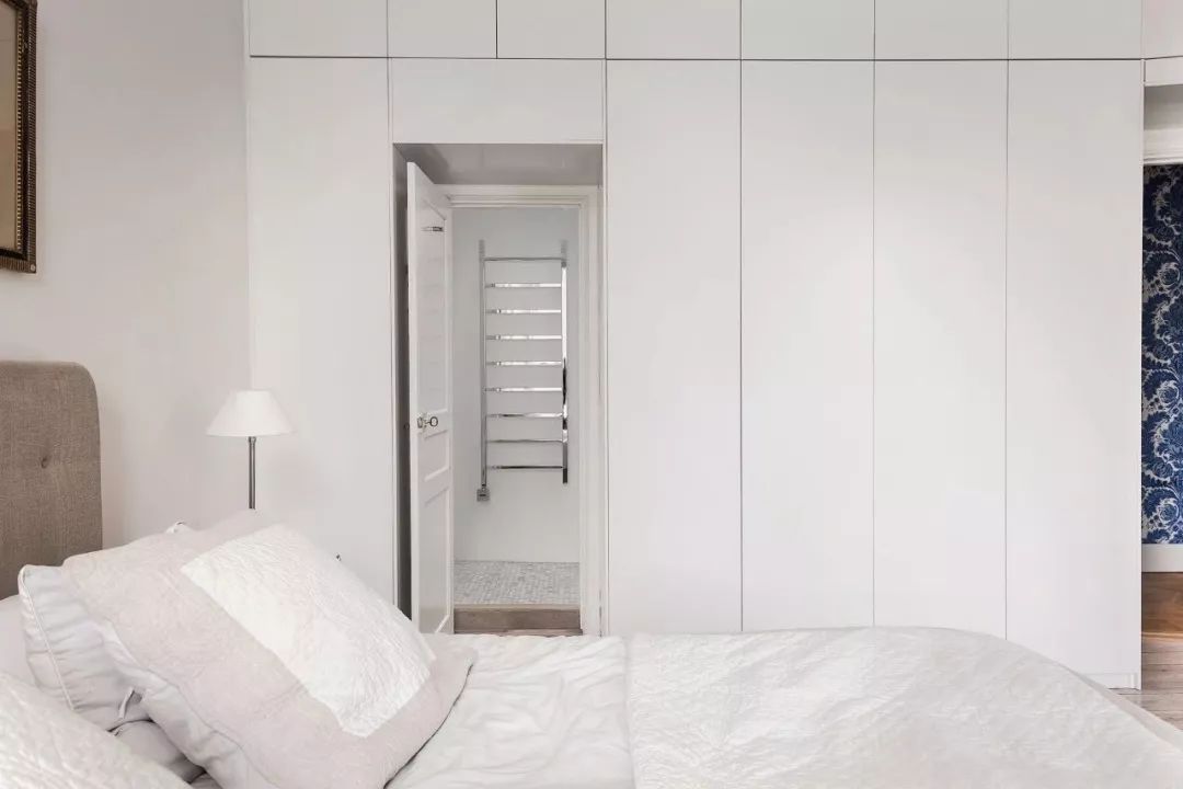 如果卧室的面积足够大,可以考虑在卧室边上留出一个独立的衣帽间空间,把柜子都集中在衣帽间内,卧室自然就显得简洁大方了。