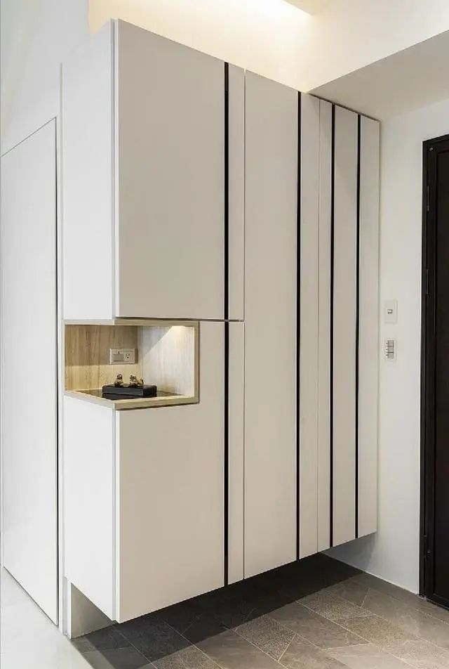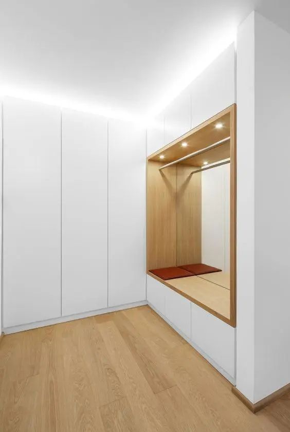 当然,最重要的一点就是增加灯光设计,可以在内嵌的玄关柜内安装灯带或者内嵌筒灯,这样无论是换鞋、找衣服都不用摸黑了,还提升了整个玄关的档次!如果能重来,我也要学邻居这样装玄关柜,进门人人夸倍有面儿不是么?