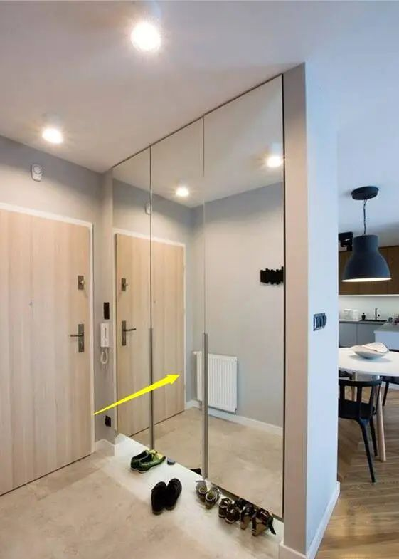 如果你家也准备在装玄关柜的时候和镜子结合,除了像我邻居家这种内嵌镜子设计,也可以参考这2种: