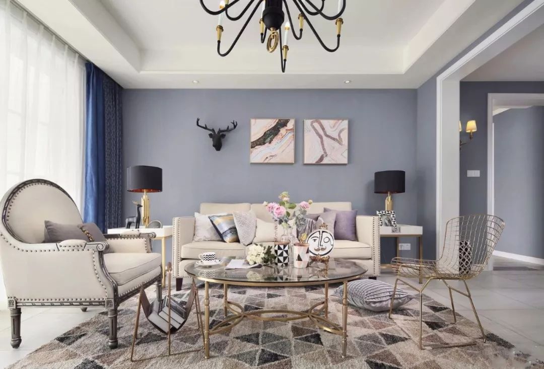 沙发背景墙在选择用挂画装饰的前提下,还可以额外的加上一些小装饰品,比如北欧风、美式风常见的鹿角装饰品。