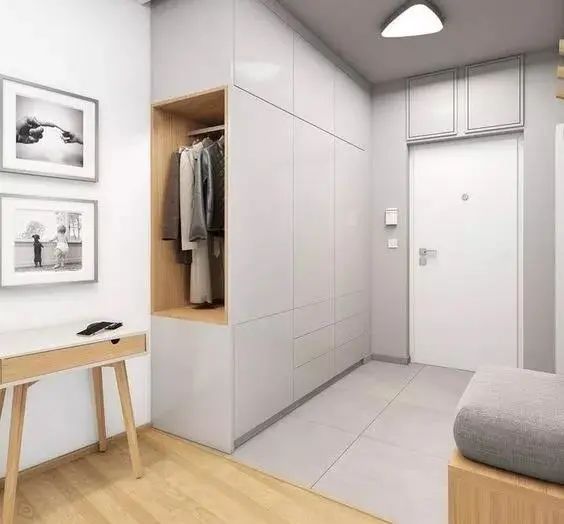 这个凹槽处可以作为一个挂衣区,日常的一些睡衣,冬天穿的外套,进卧室之后,就可以挂放到这边了。这样整个卧室也能变的格外的整齐,起码不会一进门就看到一堆堆衣服。