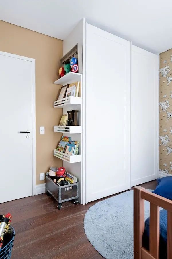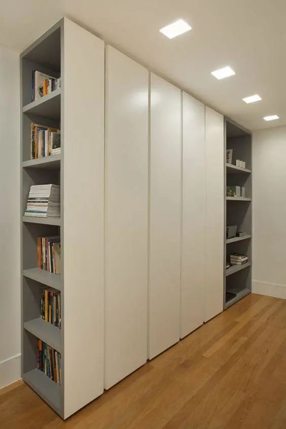 衣柜侧面也可以这样去设计,让书架和衣柜合二为一。
