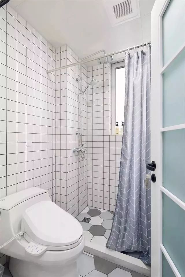 小户型的卫生间用玻璃隔断隔出一个淋浴区也不是很困难的事情,一个淋浴区有1平米左右的面积就足够了。
