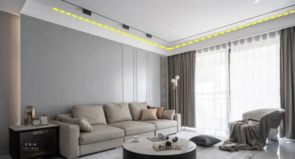 对于现代简约和北欧、日式等装修风格来说,走一圈石膏线来点缀完全够了。而且这么一圈石膏线也可以承担很多功能,比如遮蔽线管也够了,比如房子本身阴角的不平整也可以遮蔽。