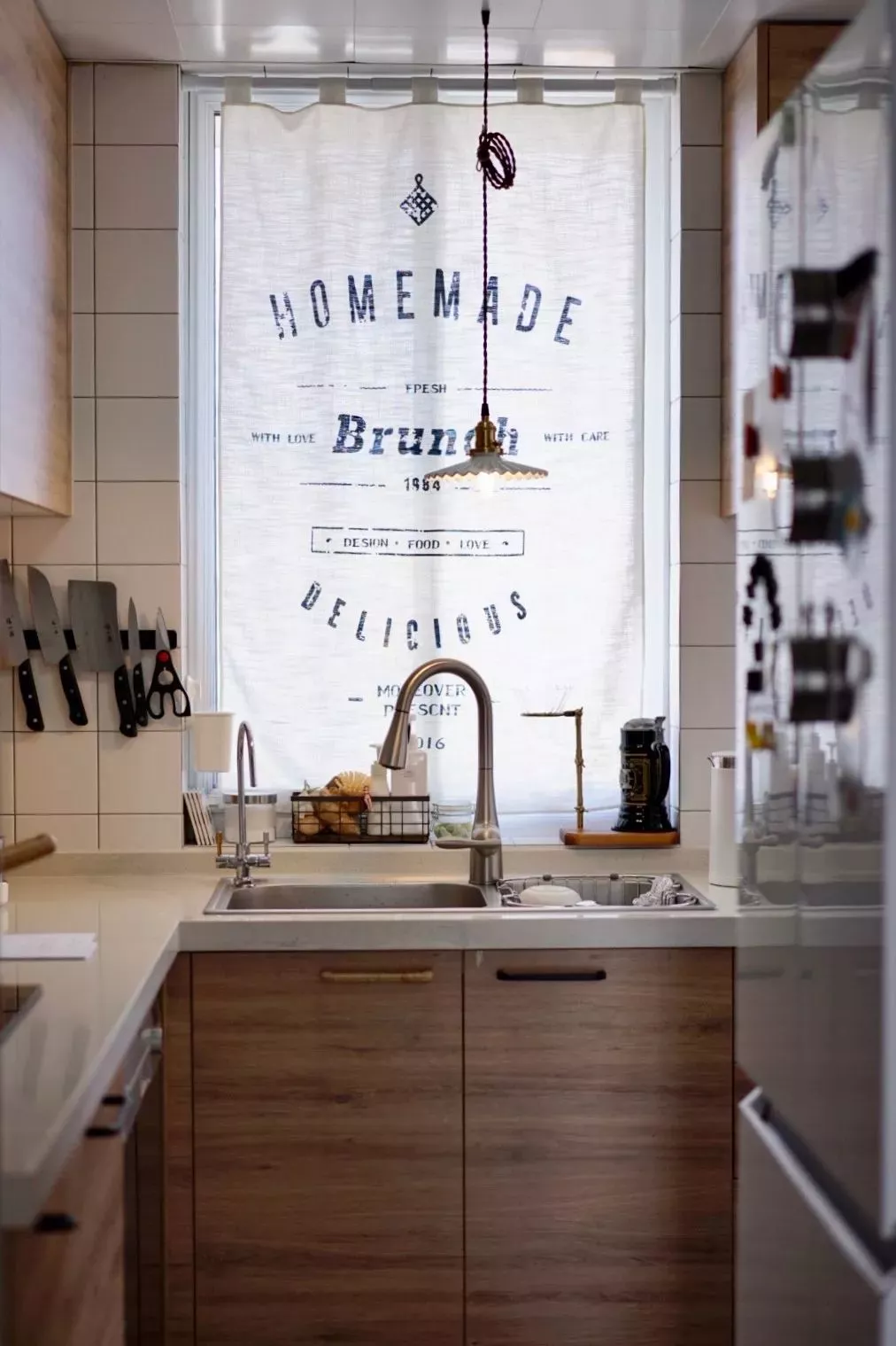 灯光的设计也是能够提升小户型厨房颜值的,在主灯的前提下,加上灯带、筒灯、吊灯等不同的局部的灯源设计,既让厨房更美观又方便日常使用。