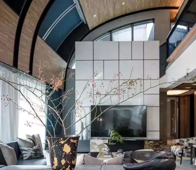▼当然这种设计一般是大户型或者别墅设计中常见的,毕竟电视与沙发之间要保证足够的观看距离。