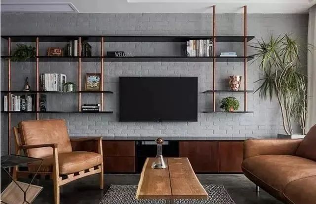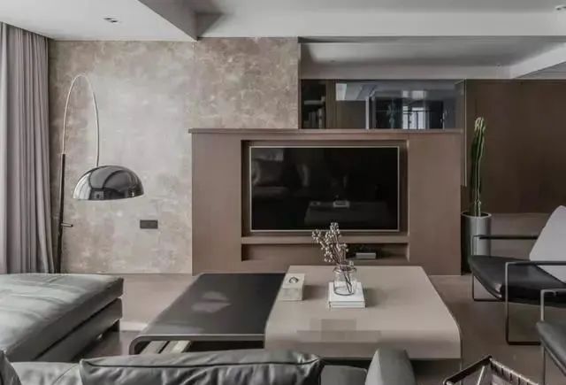 ▼电视背景墙必须要是要是一整面墙上吗?No,你out了,也可以只是单纯的隔断,搭配设计感十足的材料和造型,那就是一款艺术感十足的电视背景墙了。