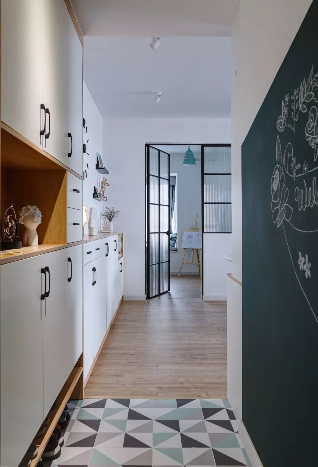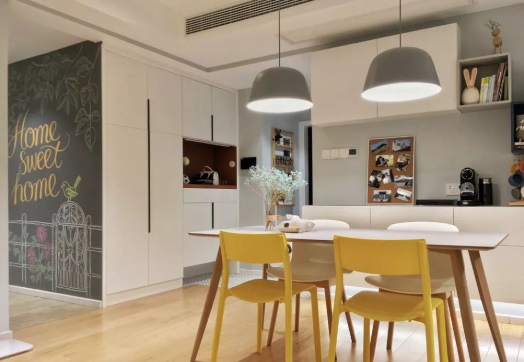 黑板墙设计这几年非常流行,既可以给孩子提供涂鸦的空间,还可以当成备忘录或者留言板使用,增加家人之间的互动,趣味无穷。