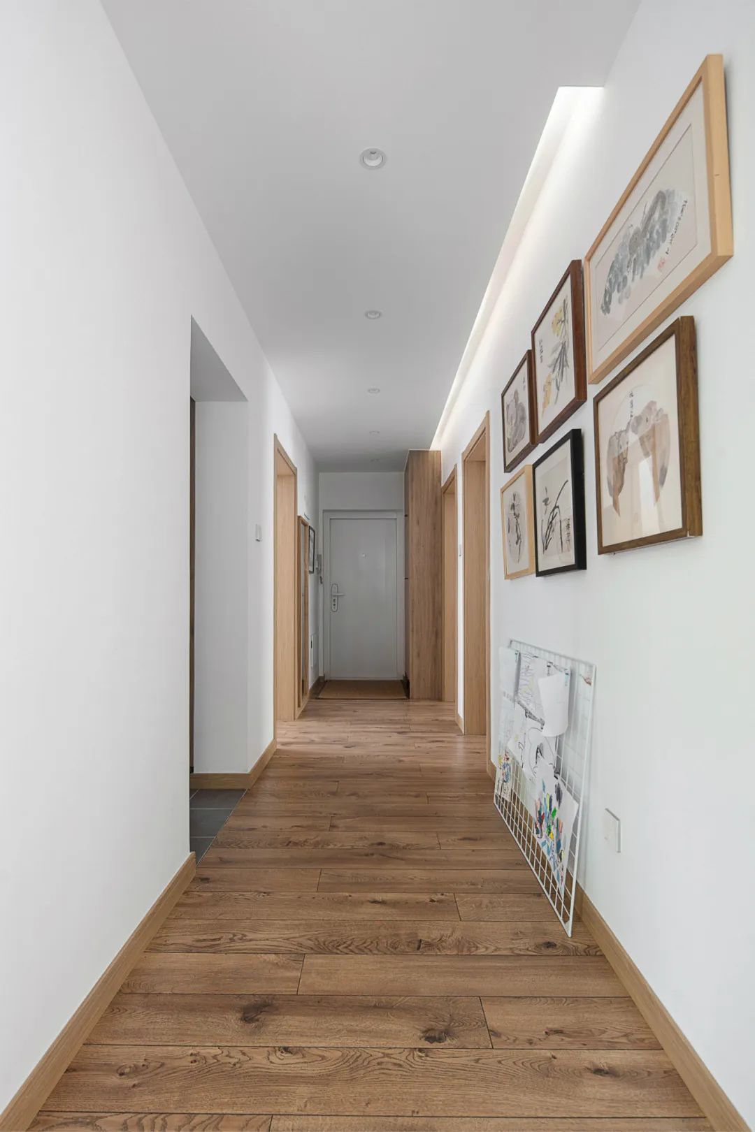 家里的过道空间也可以设计一面照片墙,不仅可以留住美好的回忆,还能装饰空间。小小的过道,大大的情调。