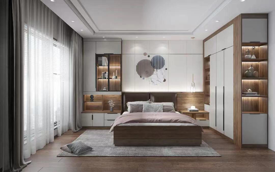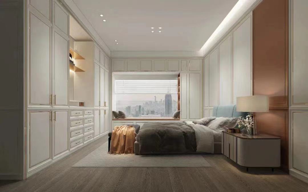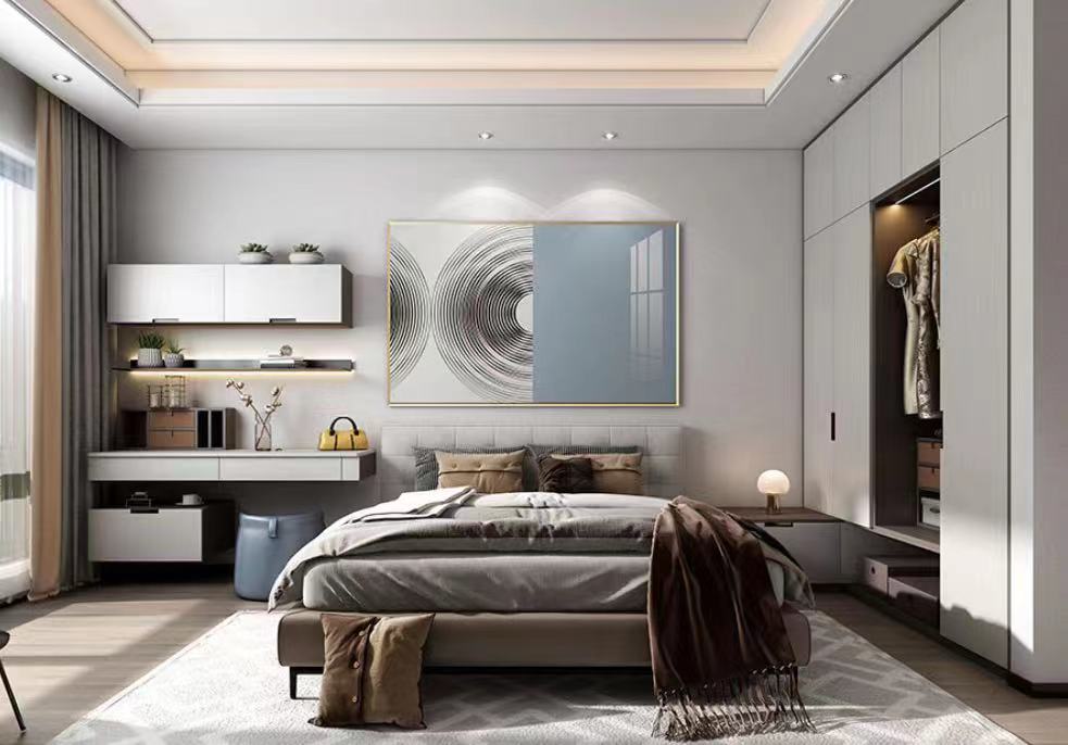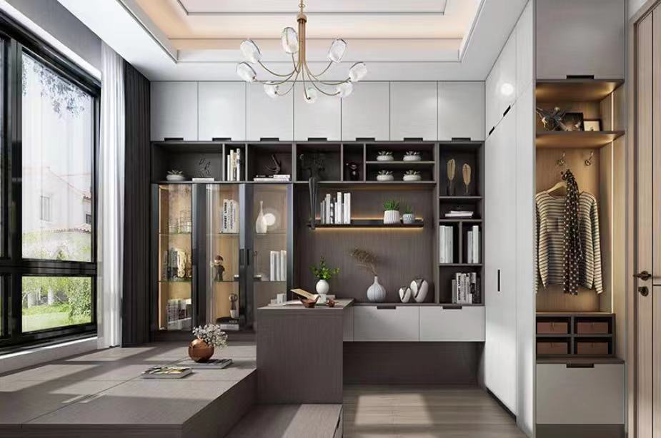 比如空间卧室对应的就是卧室衣柜,如果我们希望它还拥有书房功能,定制衣柜的时候可以与书桌结合。